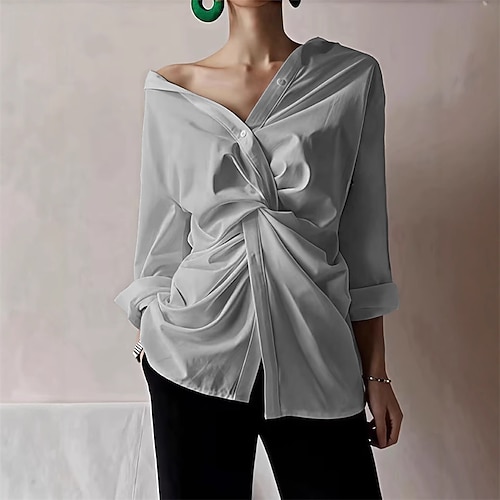 Per donna Blusa Top Eleganti Tinta unica Semplice Elegante Vintage Carino Manica Lunga Colletto a Camicia Top Regolari Quotidiano Lavoro Ferie Arricciato Patchwork Bottoni Blu Bianco Marrone Cachi