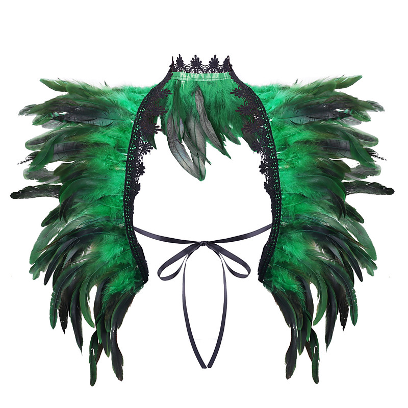 Women's Mardi Gras Feather Cape Shawl, Purple Green Gold Feather Poncho with Jeweled Collar, Carnival Parade Costume Accessories