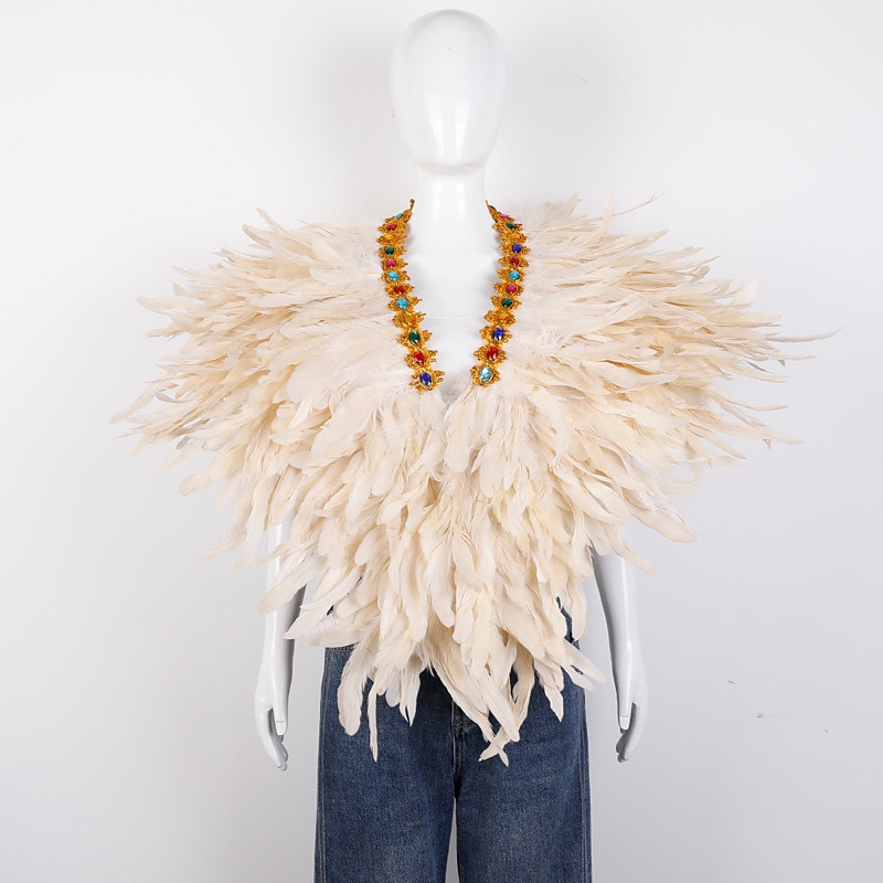 Women's White Feather Cape Shawl with High Collar, Gothic Angel Costume Accessories, Snow Queen Ice Witch Cosplay Shrug