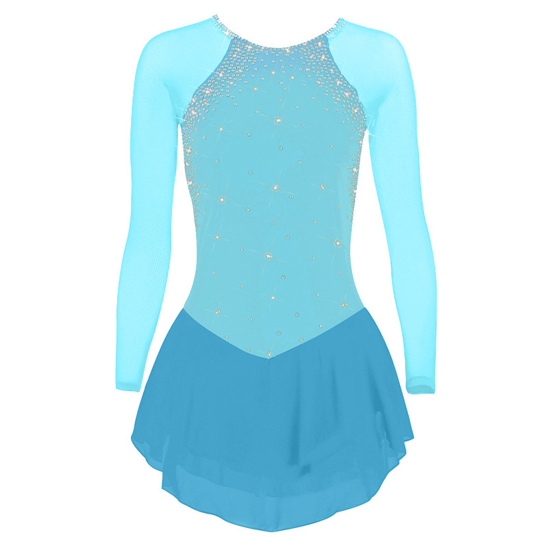 Figure Skating Dress Women's Girls' Ice Skating Dress Sky Blue High Elasticity Training Competition Skating Wear Classic Crystal / Rhinestone Long Sleeve Ice Skating Figure Skating
