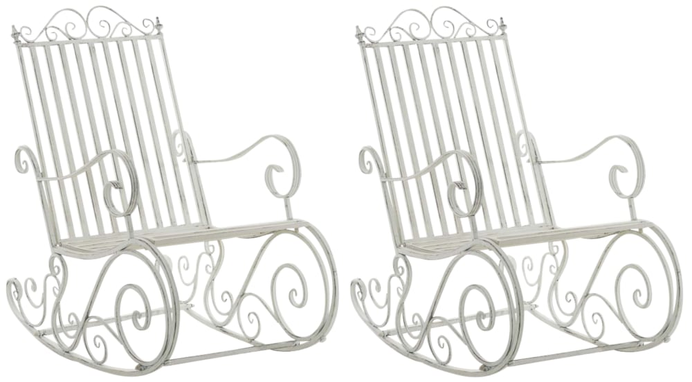 Set di 2 sedie a dondolo da esterno in Metallo bianco antico