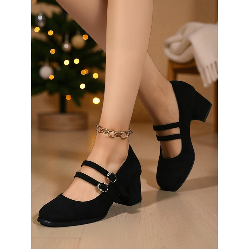 Women's Vintage Double Strap Mary Jane Heels – Retro Mid Heel Pumps with Button Closure for Formal Casual Wear