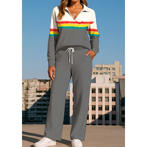 Per donna Tuta da 2 pezzi Set di tute da ginnastica Abbigliamento sportivo con tasca A righe Completo Abbigliamento Autunno Rosa scuro Bianco Lavoro All'aperto Viaggio Leggero Di tendenza Manica Lunga