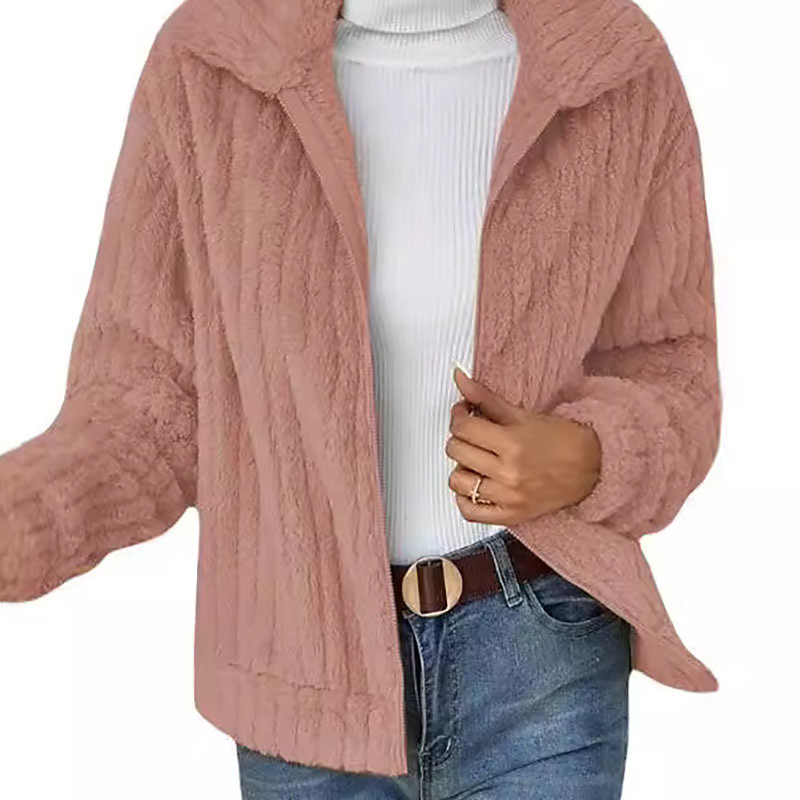Women's Winter Coat Teddy Coat Warm Comfortable Zipper Casual Plain Vacation Street Casual Daily Wear Short Turndown Regular Fit Long Sleeve Outerwear Navy Pink Blue Fall Winter