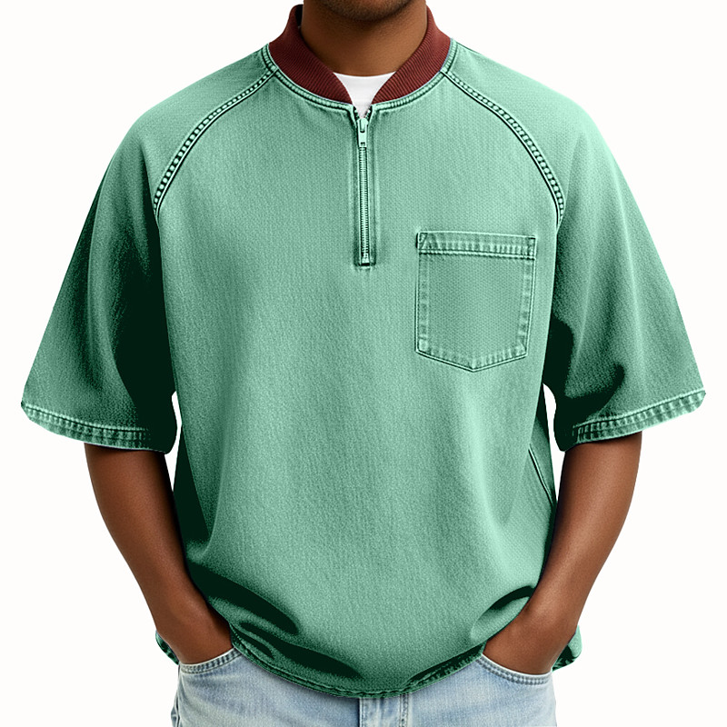Men's Tee Top Short Sleeve Collarless Round Summer All Seasons Solid Color Daily Casual Street Style Zipper Oversized Loose Outdoor Street Causal Light Blue Black Gray Top Tee for Men