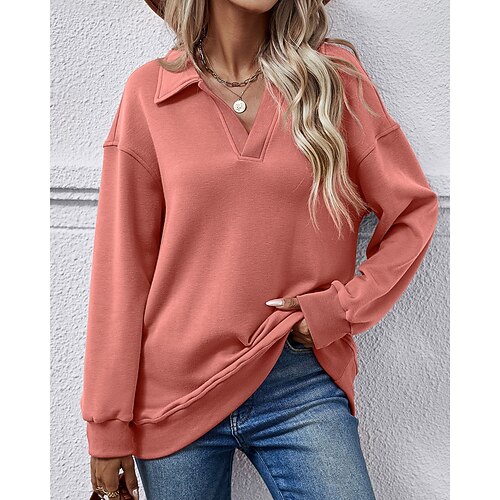 Per donna Felpa Pullover Semplice Streetwear Casual Manica Lunga Bavero Top Regolari Streetwear Abbigliamento Quotidiano Blu Rosso violaceo Rosa Azzurro cielo Rosso rosa Autunno Inverno