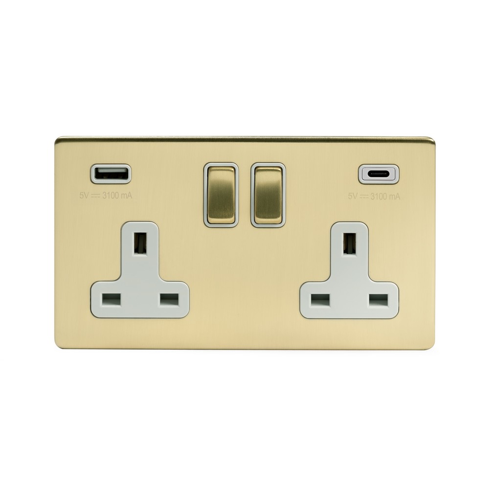 Soho Lighting Brushed Brass 2 Gang USB A + C Socket (13A Socket + 2 USB Ports A+C 3.1A)