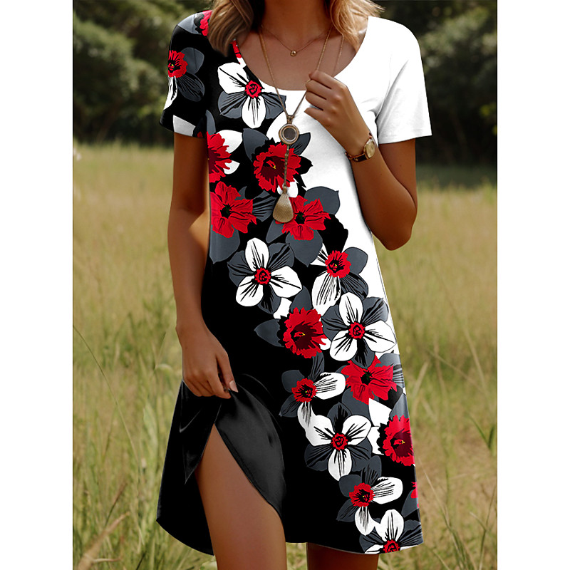 Women's Mini Dress Casual Dress T Shirt Dress Tee Dress Sundress A Line Dress Vacation Casual Boho Beach Regular Fit Floral Graphic Short Sleeve V Neck Red Blue Purple Brown Summer Spring