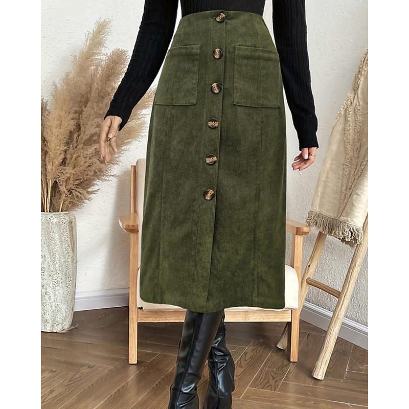 Women's Skirt A Line Vintage Fashion Midi Mid Rise Skirts Plain Pocket Inelastic Street Daily Black Red Dark Blue Coffee Spring Polyester