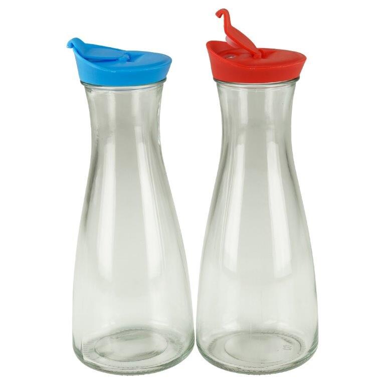 GVK ECO Glaskaraffe mit Deckel 1 Liter 2 Stück Blau/Rot