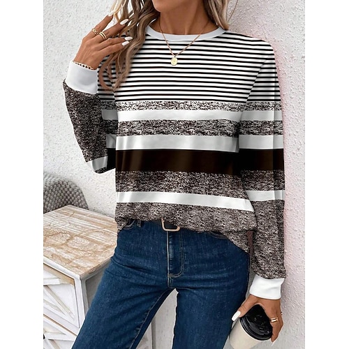 Per donna Maglietta Grafico Geometrico Moda Elegante Classico Manica Lunga Girocollo Top Regolari Quotidiano Weekend Stampato Marrone Grigio Estate Primavera Autunno