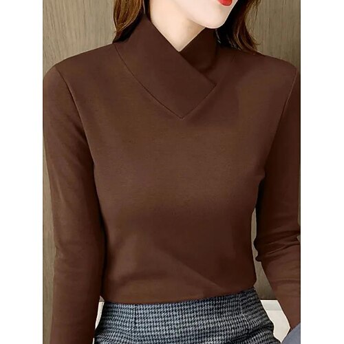 Per donna maglietta Top eleganti Liscio Di tendenza Manica lunga A V Top regolari San Valentino Giornaliero Fine settimana Nero Bianco Rosa Blu Marrone Autunno inverno
