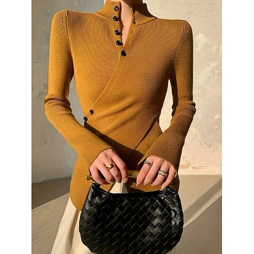 Per donna Felpa Pullover Semplice Casual Manica Lunga Dolcevita Top Regolari Streetwear Abbigliamento Quotidiano Bottoni Nero Bianco Rosso Viola Verde Autunno Inverno