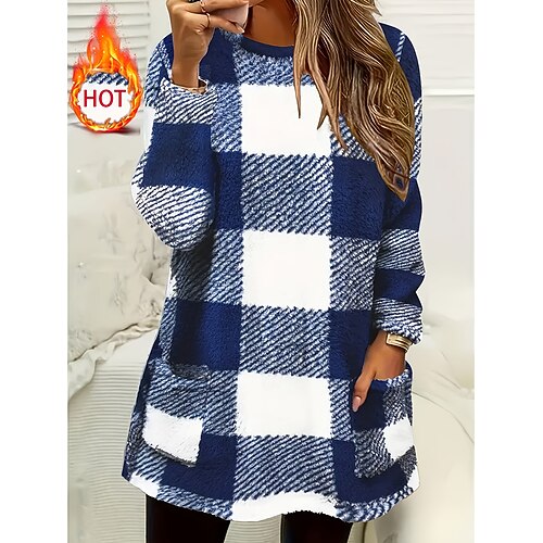 Per donna Felpa Pullover Grafico Plaid Casual Manica Lunga Girocollo Top corti Streetwear Abbigliamento Quotidiano Casuale Nero Giallo Blu Marrone Autunno Inverno