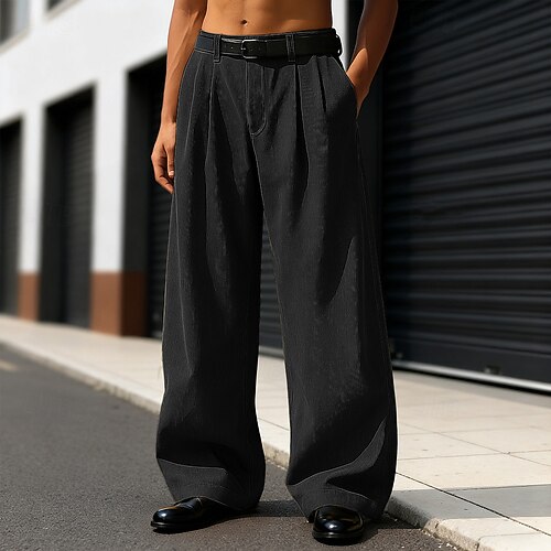 Per uomo Pantaloni Pantaloni Eleganti Pantaloni in velluto a coste Pantaloni Larghi Tasca Frontale Semplice Comodità Lunghezza intera All'aperto Casa Feste Vacanza Moda Vestibilità comoda Nero Cachi