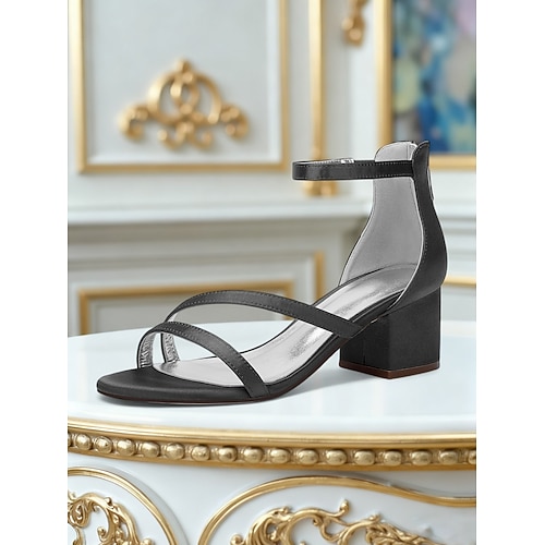 Per donna Sandali Feste Matrimonio Tacco a Blocco Punta aperta Elegante Moda Sexy Camminata Raso Cerniera Argento Vinaccia Nero