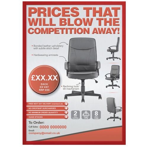 Franken X-tra!Line DIN A4 Inforahmen Magnetisch Rot Kunststoff ITSA4M/5 01 23 (B) x 31,7 (H) cm 5 Stück