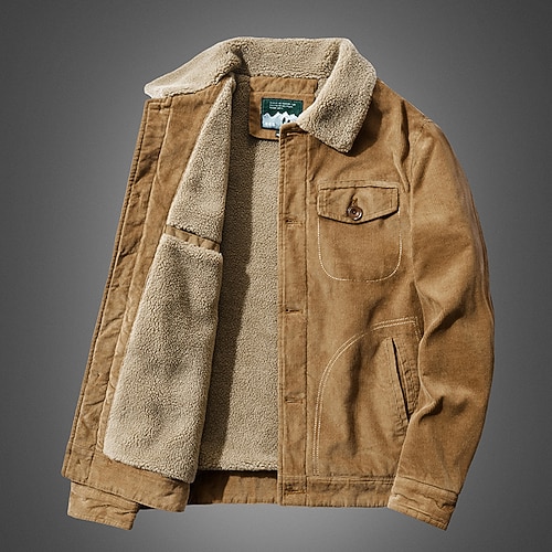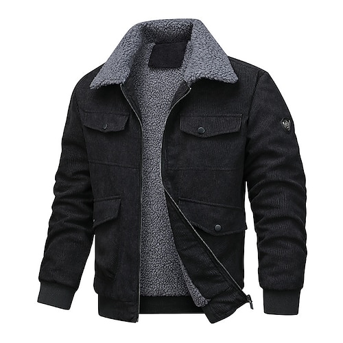 Per uomo Giacca in Velluto a Coste Giacca in Pile Formale Casa Calore Termico Tasca Colletto in pile Autunno Inverno Tinta unica Attivo Neutro Corto Nero Marrone Grigio Giacca