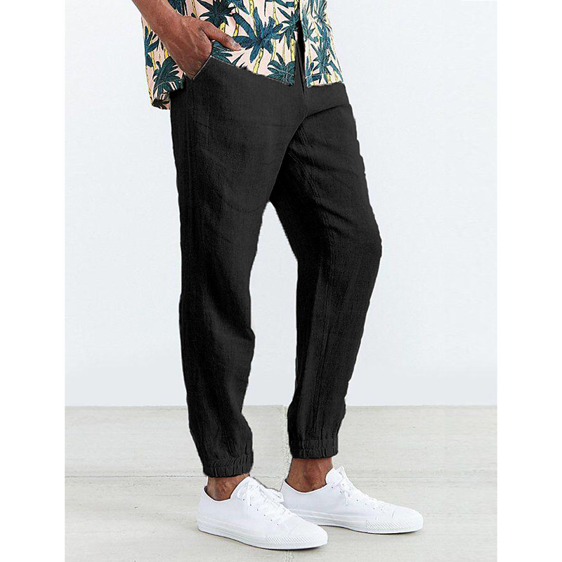 Men's Joggers Linen Pants Trousers Summer Pants Casual Pants Drawstring Pocket Elastic Waist Plain Comfort Breathable Home Daily Holiday Basic Casual Black White Inelastic