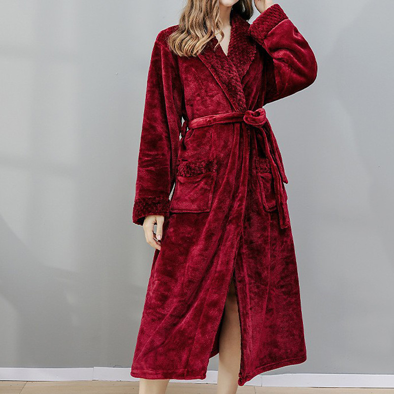 Women's Pajamas Bathrobe Robes Gown Nighty 1PC Pure Color Warm Plush Casual Party Home Daily Fleece Terry V Wire Long Sleeve Modern Style Belt Included Pocket Fall Winter Home Outfits