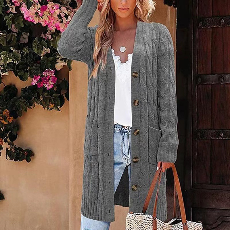 Women's Sweater Cardigan Elegant Fashion Streetwear Solid Color V Neck Pocket Buttons Knitted Long Sleeve Long Tops Knit Outdoor Home Work Blue Yellow Fall Winter