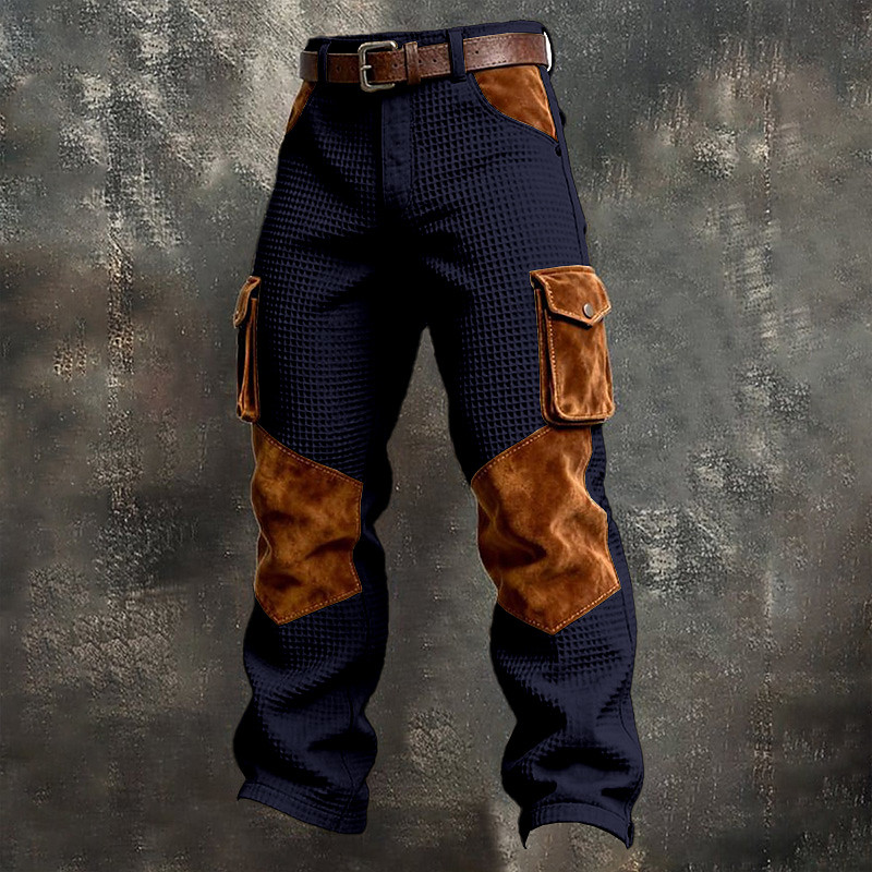 Men's Waffle Cargo Pants Trousers Casual Pants Pocket Elastic Waist Multi Pocket Plain Comfort Soft Full Length Casual Daily Outdoor Vacation Fashion Black Army Green Micro-elastic
