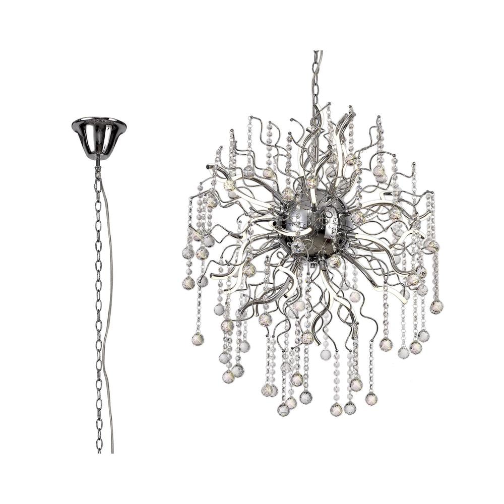 Louise Pendant 5 Light E27 With White Shades Polished Chrome/Clear Crystal Mantra