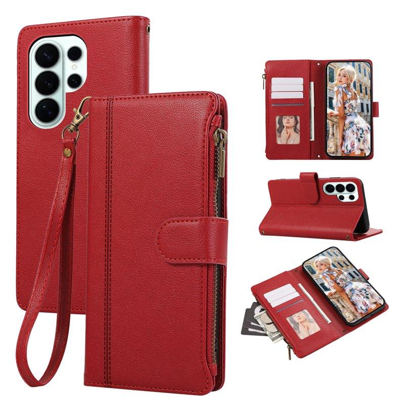 Samsung Galaxy S26 Ultra Plånboksfodral Dragkedja Konstläder - Svart