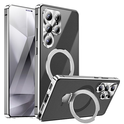 Handy Hülle Handyhüllen Für Samsung Galaxy S26 Ultra Plus S25 S24 S23 S22 S21 Ultra Plus Ganzkörperhülle Magnetische Adsorption Mit Magsafe Tragbar Flip klar Transparent Einfarbig Aluminiumlegierung