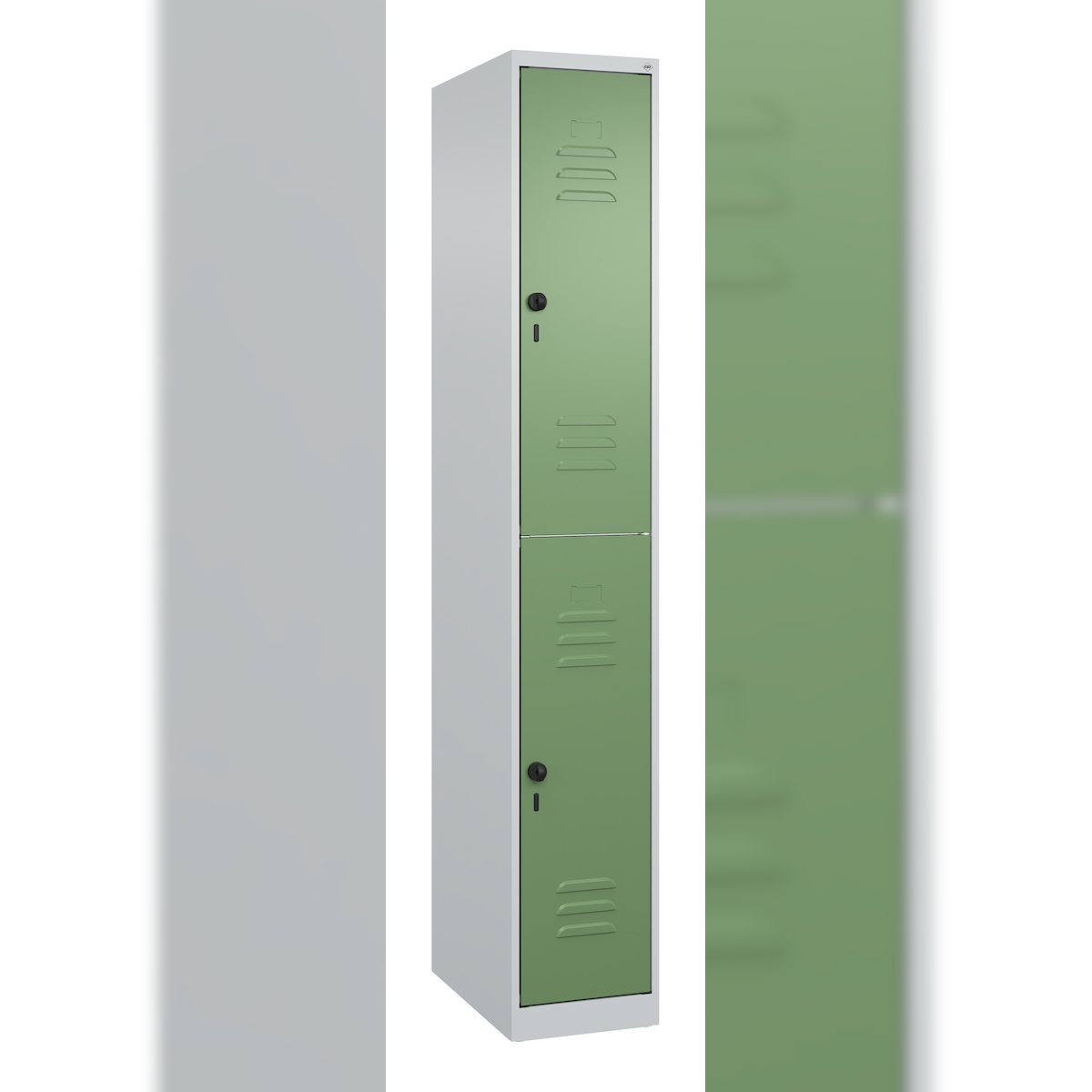 C+P Spind Classic PLUS, 2 Abteile, HxBxT 185x30x50cm, Sicherheitsdrehriegel, Hellgrau/Resedagrün von PROREGAL