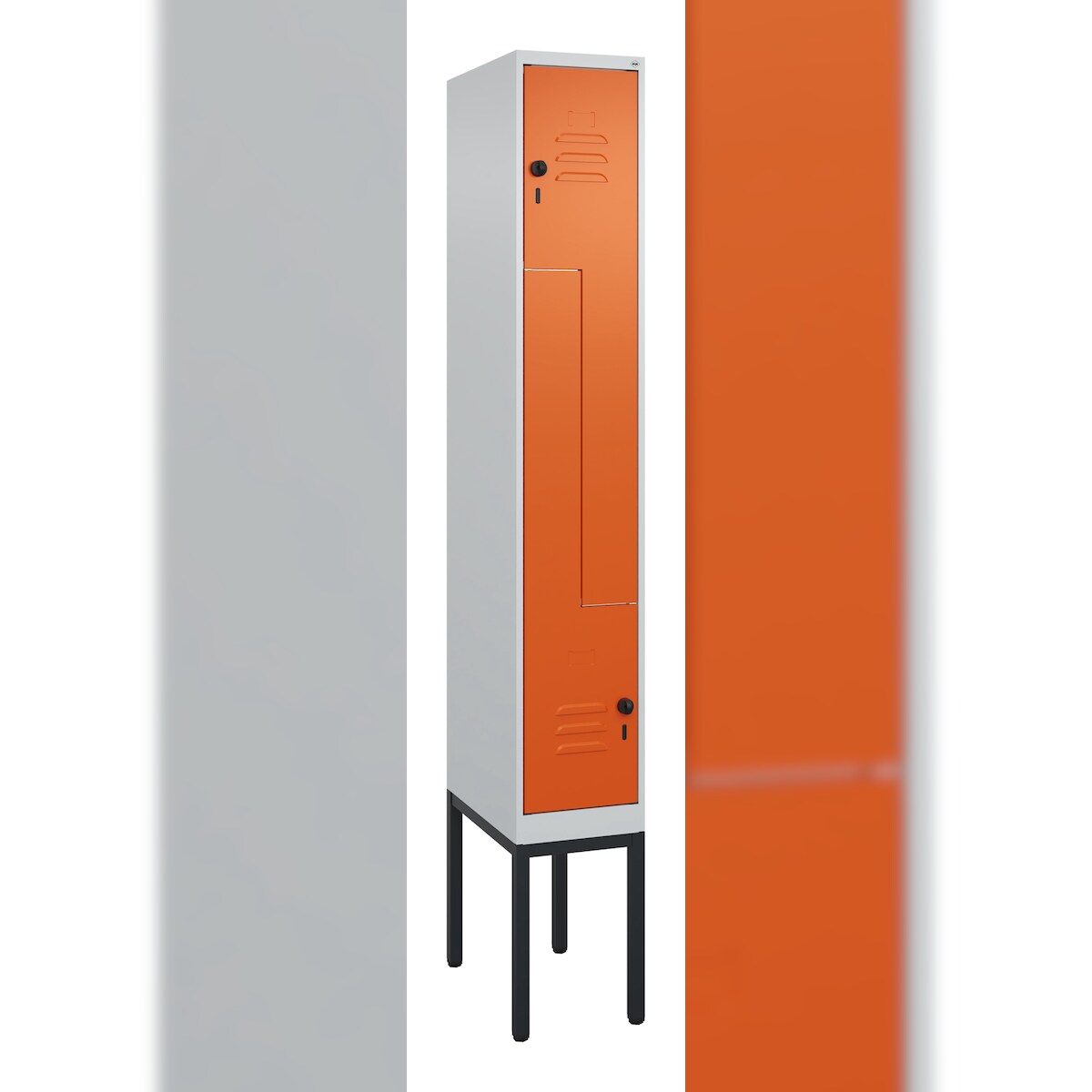 C+P Z-Spind Classic PLUS, Gestell, 2 Abteile, HxBxT 212x30x50cm, Sicherheitsdrehriegel, Hellgrau/Reinorange von PROREGAL