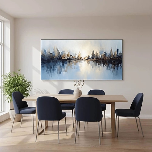 arte murale astratta paesaggio urbano decorazione murale tela pittura blu colorato tema città dipinti opere d'arte moderna per soggiorno sala da pranzo camera da letto ufficio decorazione