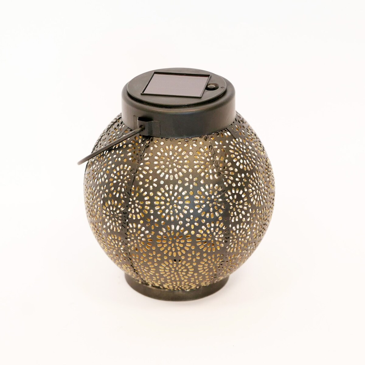 Lumineo Solarlaterne Gartenlaterne Kugel Metall mit Timer schwarz H 15 x Ø 14 cm