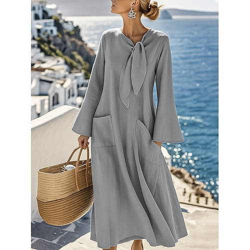 Per donna Abito Midi Vestito Estivo Abito a trapezio Casual Spiaggia Quotidiano Ferie Semplice Manica Lunga Girocollo Giallo scuro Nero Bianco Blu pavone Estate Autunno