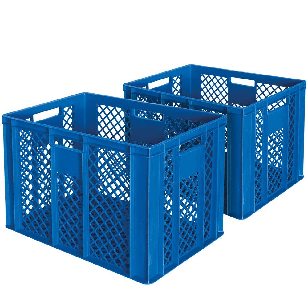 BRB 3x Eurobehälter durchbrochen/Stapelkorb, Industriequalität, lebensmittelecht, LxBxH 600 x 400 x 320 mm, blau