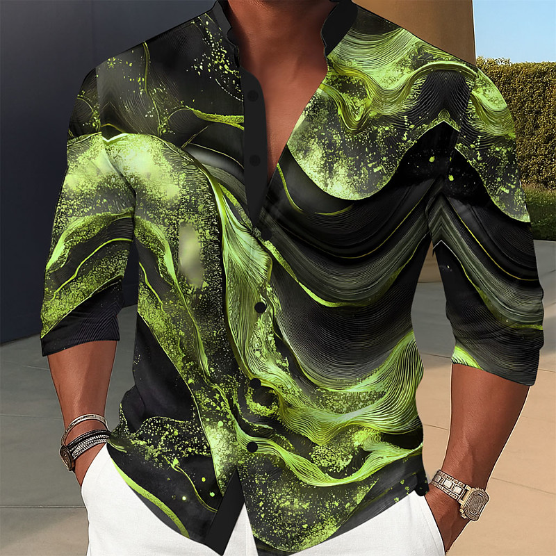 Men's Geometric Marble Abstract Liquid Art Shirt Stand Collar Shirt Long Sleeve Fashion Casual Dailywear Holiday Spring Fall Mandarin Collar Band Collar 3D Print Button Up Shirts Purple Brown Gray