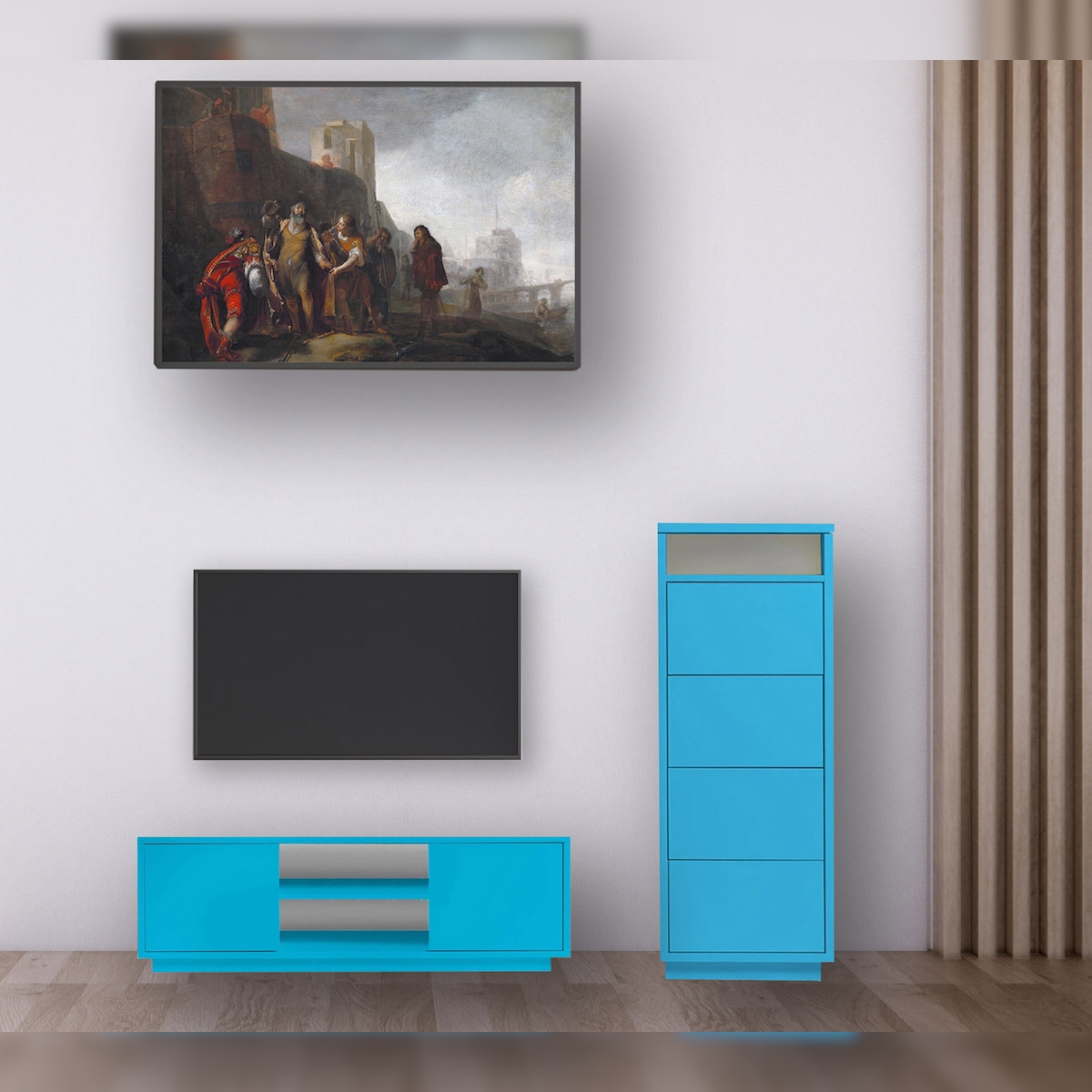 Aileenstore Wohnwand Set modern 2 teilig TV Lowboard, Sideboard für Wohnzimmer oder Kinderzimmer Türkis