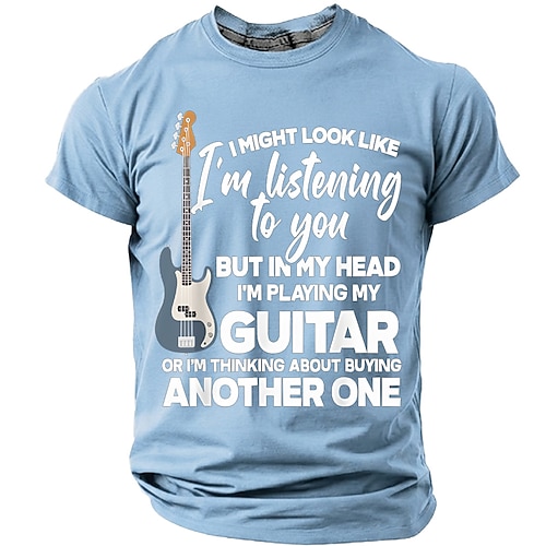 Herren-T-Shirt mit Bass-Grafik: „Ich höre zu, aber in Gedanken spiele ich Gitarre oder kaufe mir eine neue." – Lustiges, sarkastisches T-Shirt mit Bass-Motiv, normale Passform, Geschenk für