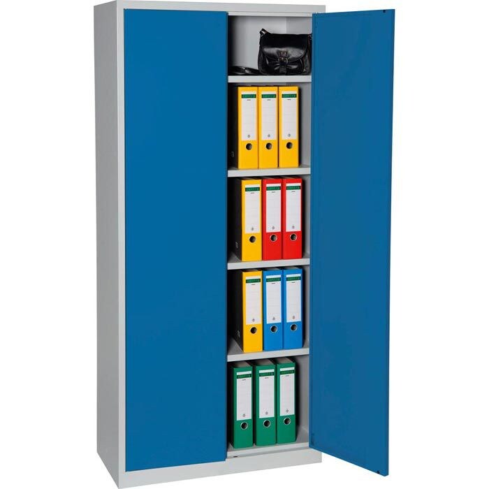 PROREGAL Flügeltürenschrank Badger | 4 Fachböden | Eurolock Griff Sockel | HxBxT 180x80x38 cm | Grau-Blau | Lackiert