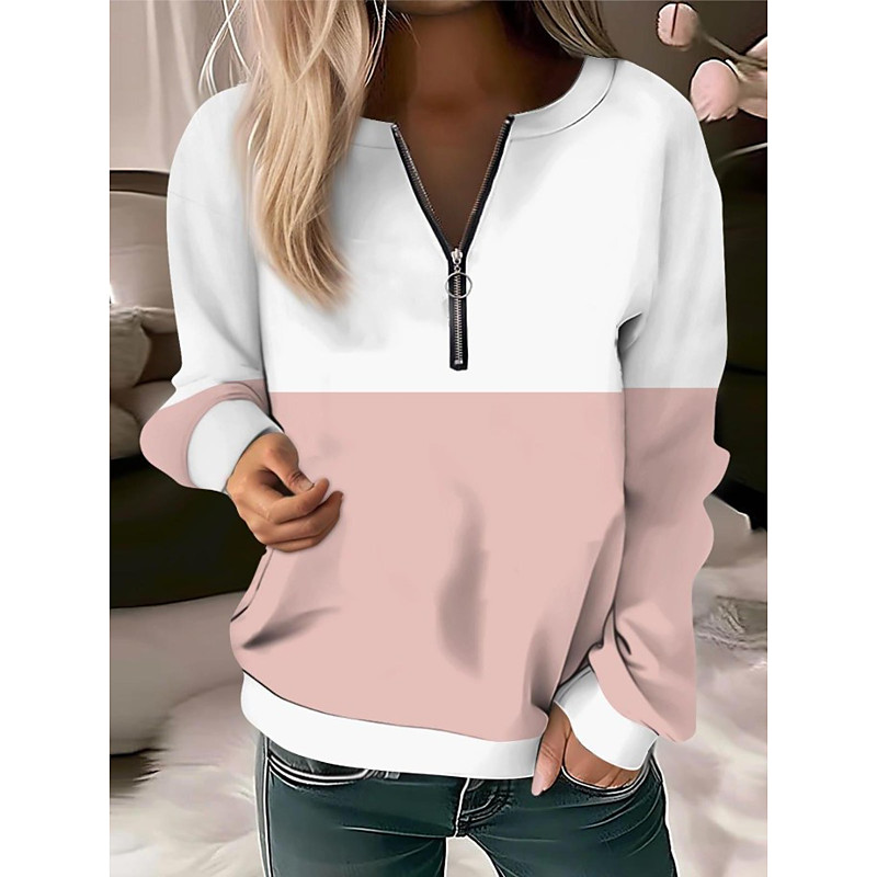 Women's Quarter Zipper Sweater Graphic Geometric Casual Long Sleeve Crew Neck Regular Tops Street Dailywear Half Print Black Yellow Pink Red Purple Fall Winter
