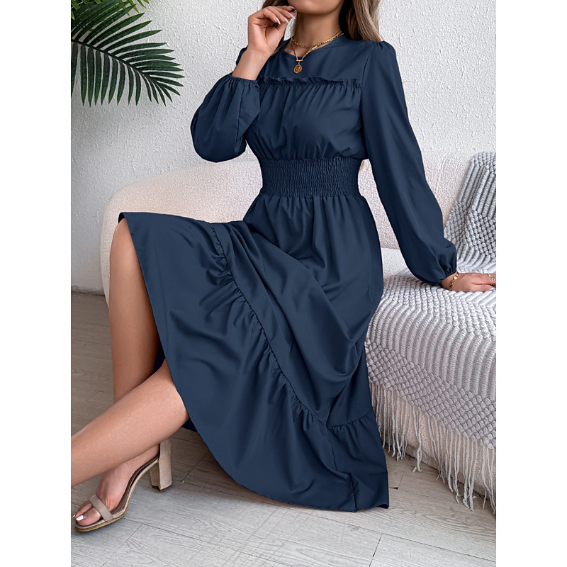 Women's Midi Dress A Line Dress Casual Daily Regular Fit Plain Long Sleeve Crew Neck Blue Navy Wine Brown Summer Spring Fall
