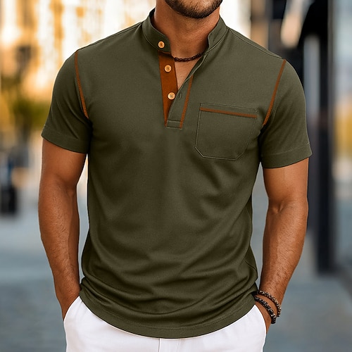 Per uomo Maglia Henley Maglietta Manica Corta Collo alla coreana Henley Estate Primavera Autunno Tinta unica Semplice Casual Elegante casual Tasca Bottoni All'aperto Casuale Quotidiano Nero Verde