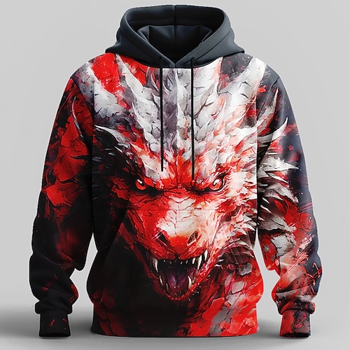 Per uomo Drago 3D Felpa con Cappuccio Felpa Cool Festa Manica Lunga Girocollo Club Abbigliamento casual alla moda Blu Rosso Verde Coulisse Autunno Inverno progettista S M L XL XXL XXXL