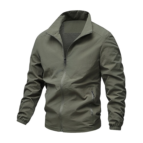 Per uomo Giacca Leggera Giacca Estiva Giubbotto bomber Giacca a vento Vacanza Quotidiano Resistente all'usura Tasca Primavera Autunno Semplice Moda Classico Collo alla coreana Regolare Nero Verde