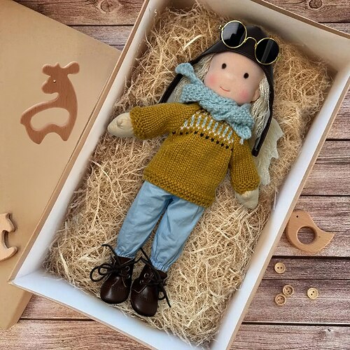 Bambola Waldorf fatta a mano per bambina con set di vestiti - bambola di peluche morbida da 11,8 pollici per bambini piccoli, regalo di Natale ideale per bambini