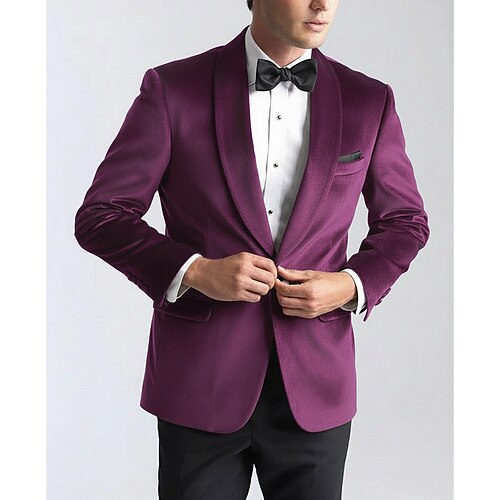 Per uomo Blazer di velluto Collo a scialle Natale Festa Casual Tinta unita Blazer di velluto Rosso Viola Vestibilità su misura Monopetto Un Bottone