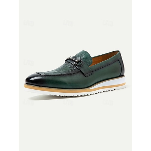 scarpe casual da uomo in pelle verde, design elegante slip-on, comoda suola ammortizzata, look casual alla moda per matrimoni, feste e abbigliamento quotidiano