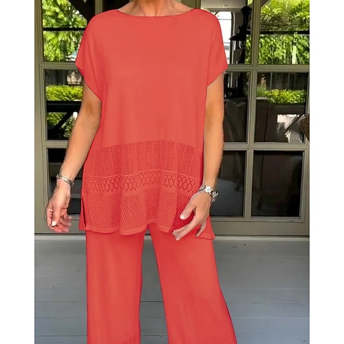 Per donna Set di Pantaloni Bolero Top Manica Lunga Girocollo Semplice Foro Elegante Moda Streetwear Casuale Quotidiano All'aperto Nero Rosa Rosso Estate Vestibilità comoda