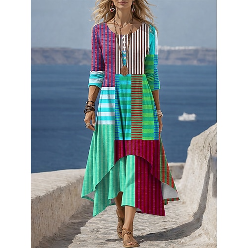 Per donna Abito Midi Abito a Tubino Casual Quotidiano Ferie Vestibilità comoda Grafico Geometrico Manica Lunga Girocollo Blu Rosso Blu reale Viola Estate Primavera