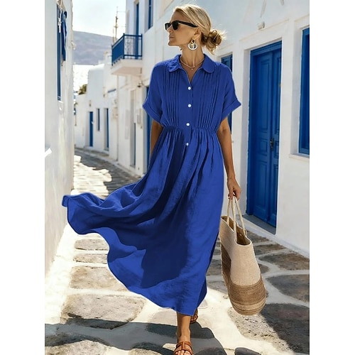 Per donna Abito Midi Abito Estivo Vacanza Casual Boho Quotidiano Spiaggia Ferie Vestibilità comoda Semplice Manica Corta Bavero Blu Bianco Giallo Rosa Estate